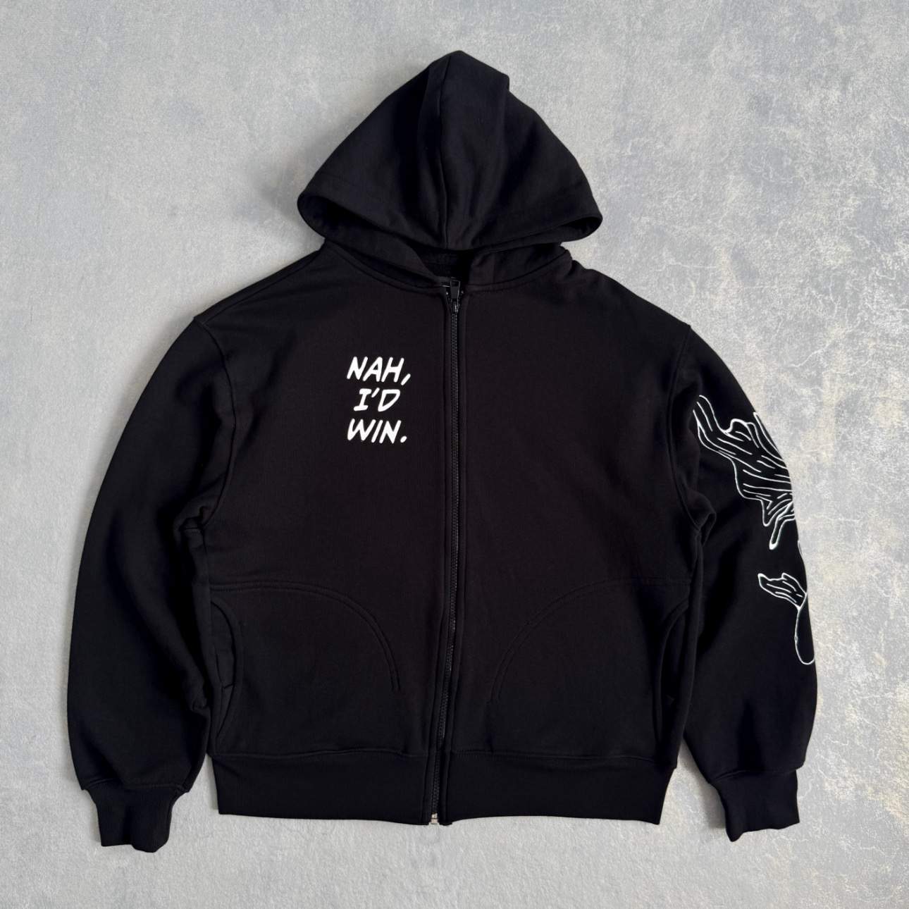 Hoodie con capucha de silueta amplia para un ajuste cómodo y moderno. Cuenta con cierre frontal mediante cremallera y bolsillos en el frente.