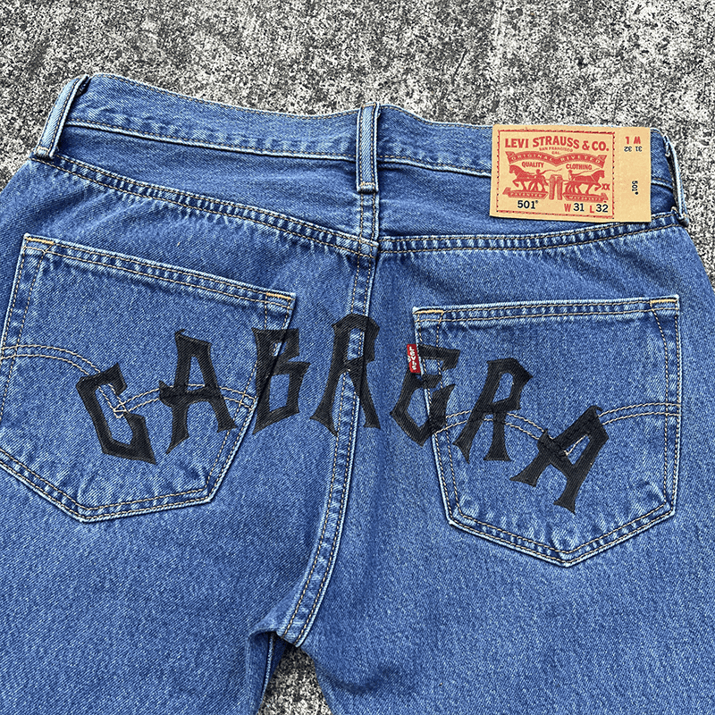 Uno de uno, hecho a mano, mas de 90 horas de trabajo, tote bag personalizado incluido, jean Levi´s 501 original fit 31/32, 100% algodón de alto gramaje, personalizado en ambas mangas con pintura textil altamente garantizada.